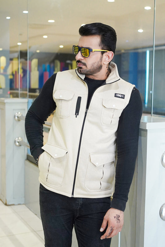 Premium Cotton Fleece Four Pocket sleeveless Jacket Light Skin JKT # 04