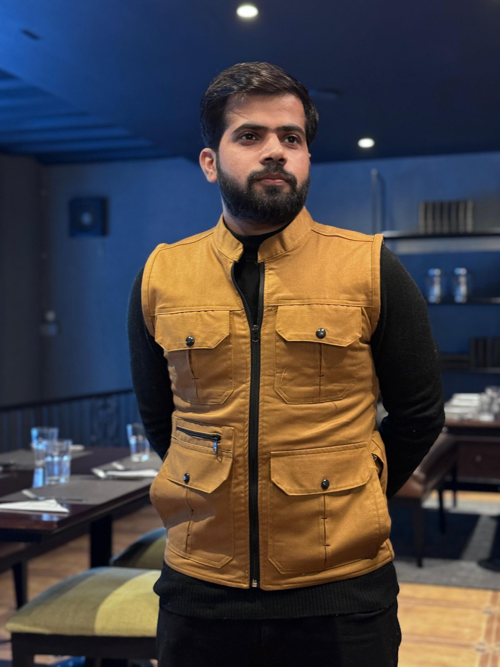LV Men's Premium Cotton Jeans Sleeveless Mustard Stylish Jacket LV#TJJ03