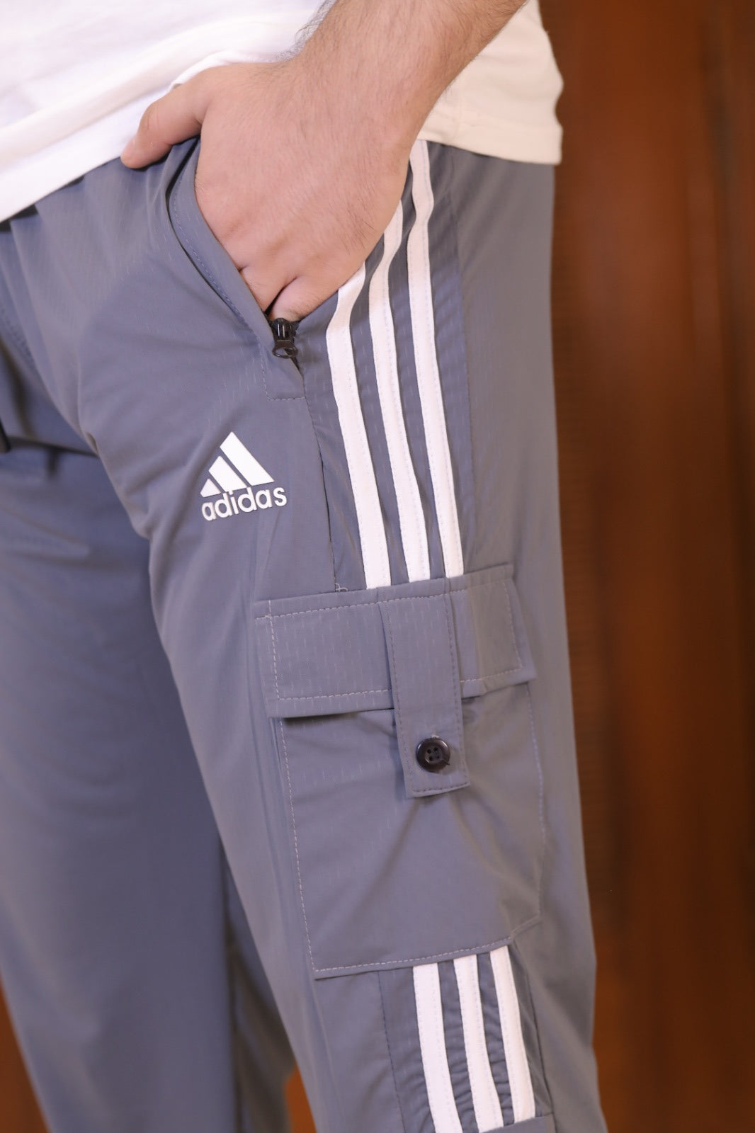 Three Tapes Men's 4 way Stretch-able Lycra Cargo Trousers Grey